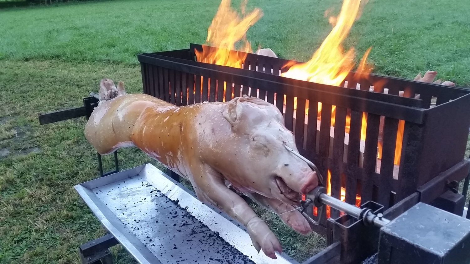 Cochon de lait, agneaux saucisses, brochettes… Le barbecuteur cuit chez vous ou vous livre !